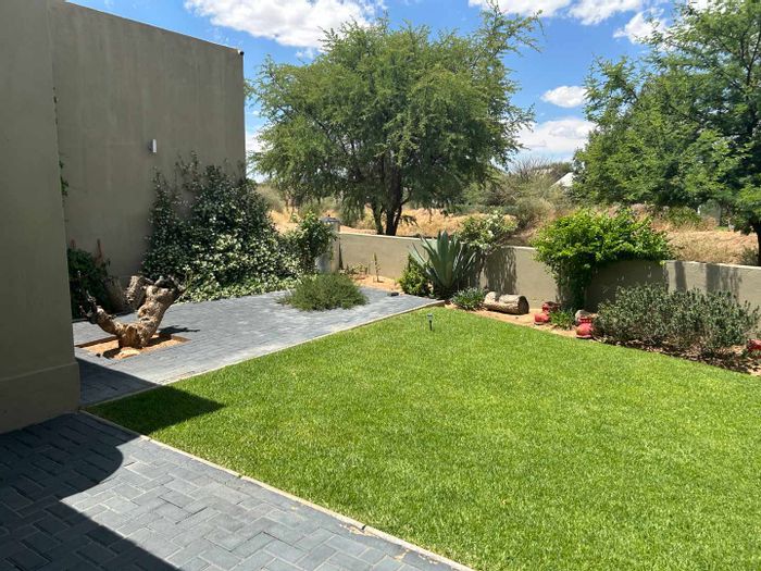 Golf estate living near Windhoek with walking trails and a family-friendly community; sunlit open-plan rooms, modern kitchen and private patio garden ideal for entertaining. Three bedrooms, two bathrooms.