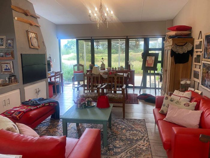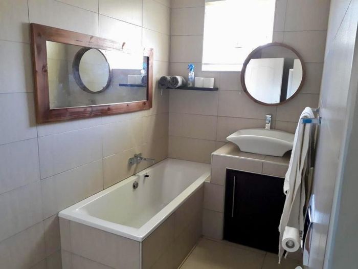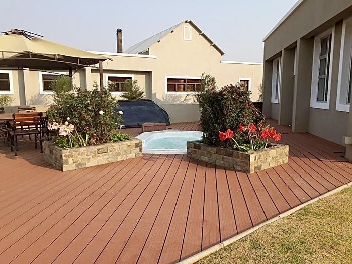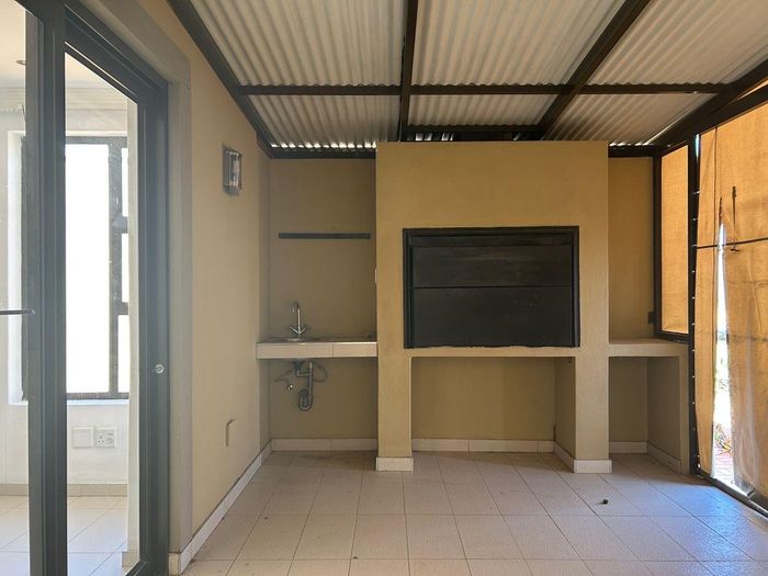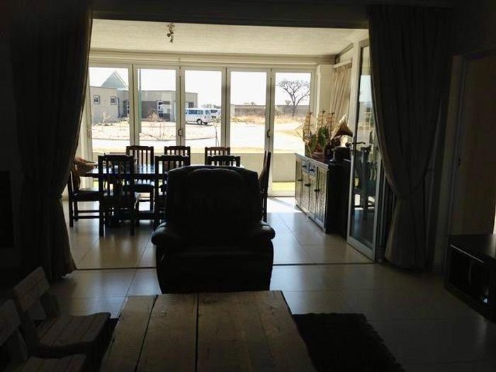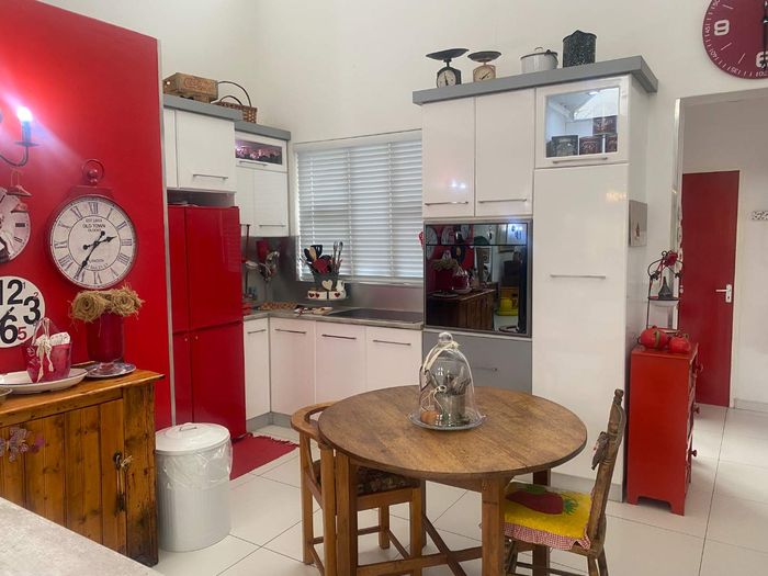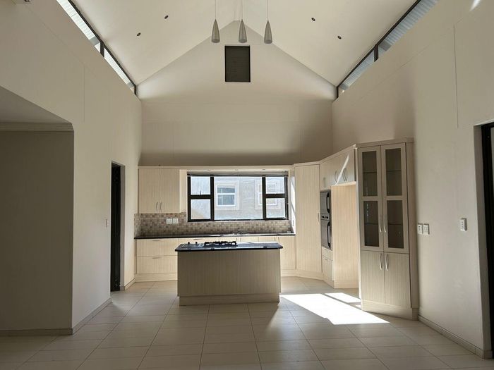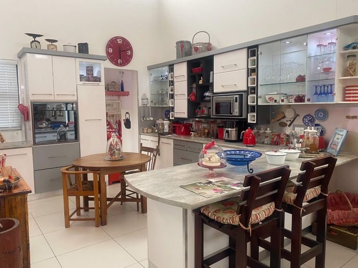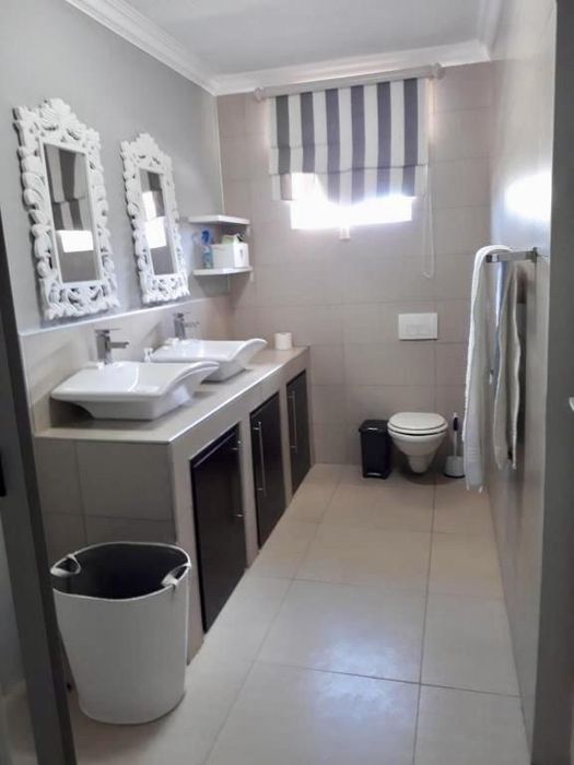 Three bedroom house with 2 bathrooms, main on-suite, and guest wc. There is a large study that can also be used as an extra bedroom. Open plan living area, dining and kitchen with modern finishes, aircon and fireplace. Separate scullery, drying yard and double garage.
