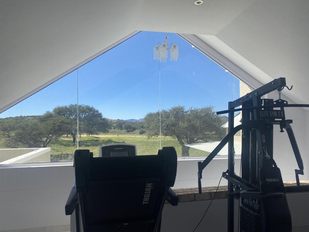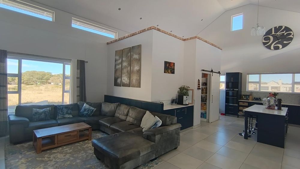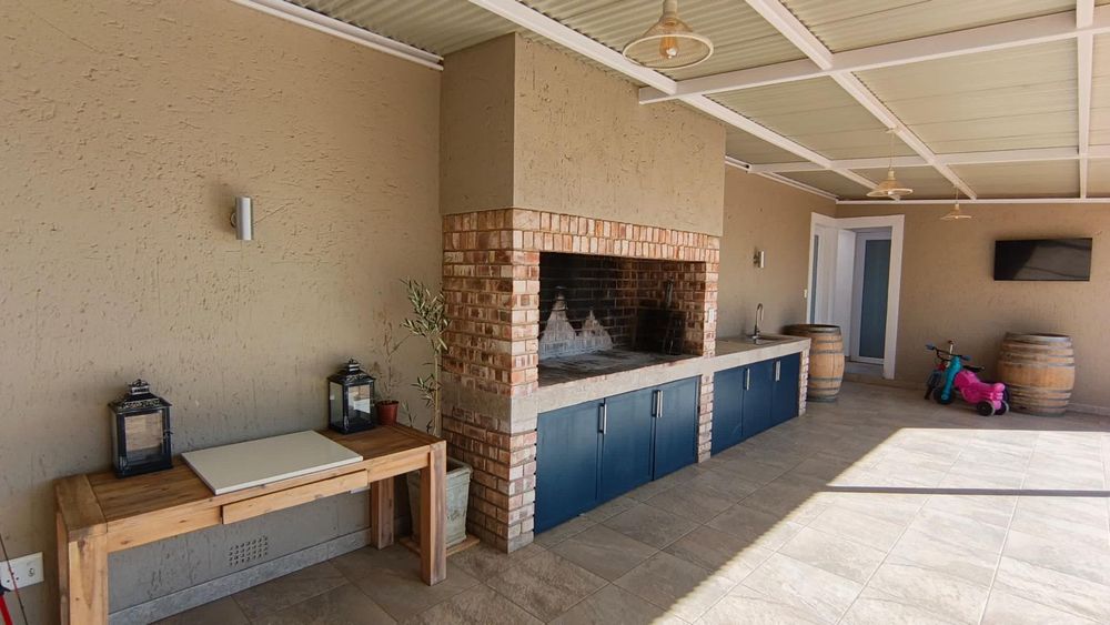 Enjoy working from home in the study with breathtaking views of nature, creating an inspiring and peaceful environment. The guest room also features an en-suite bathroom, ensuring comfort and privacy for visitors. Step outside to find both inside and outside braai areas, a spacious stoep perfect for al fresco dining, and three garages providing ample parking and storage space.