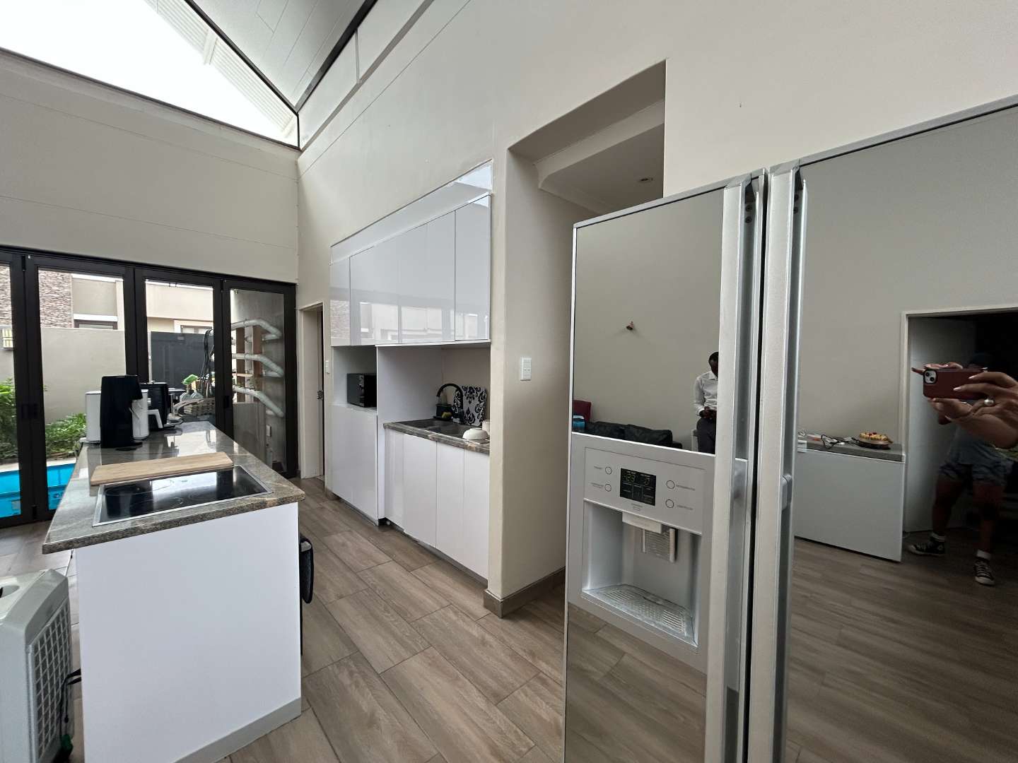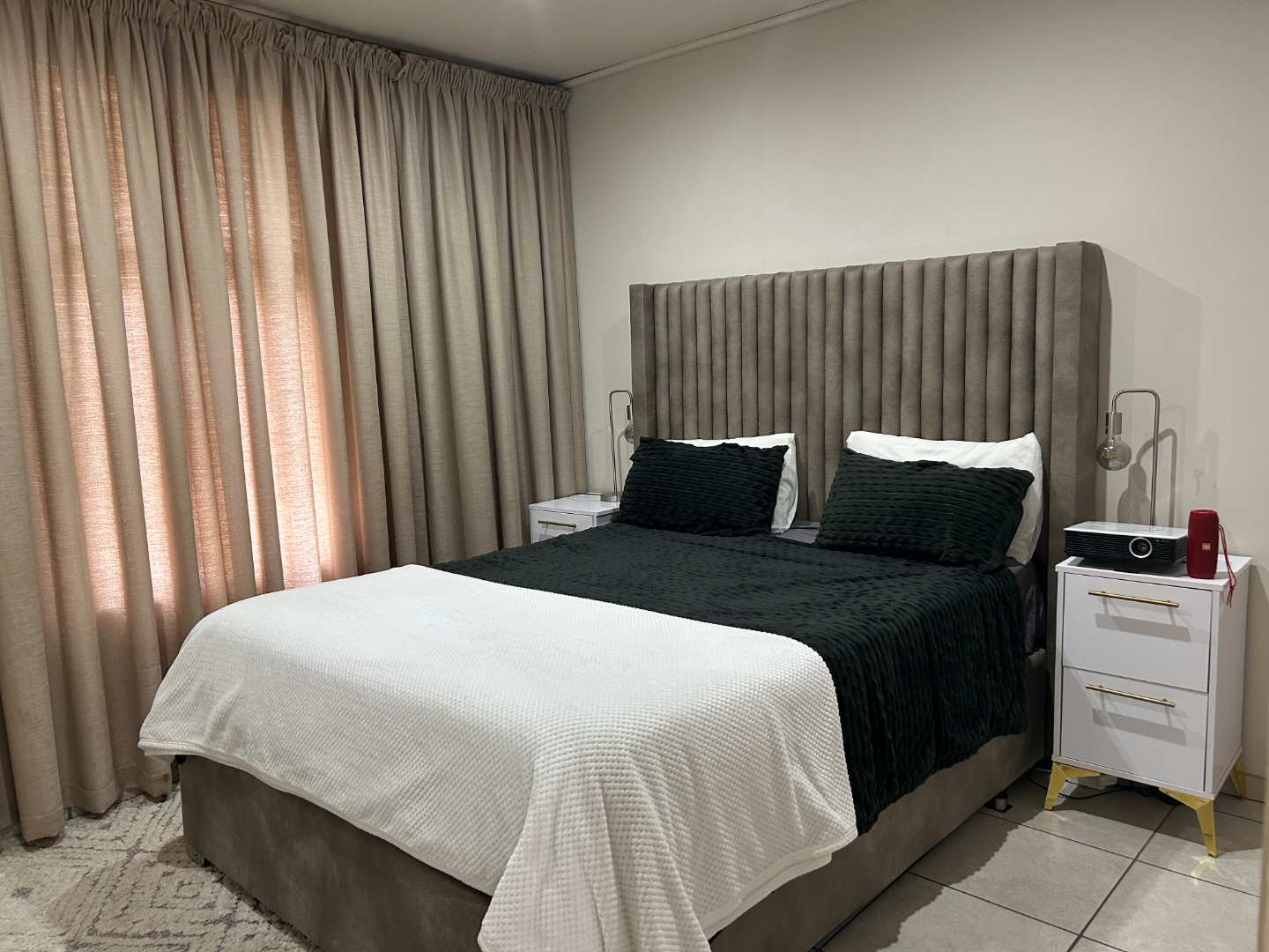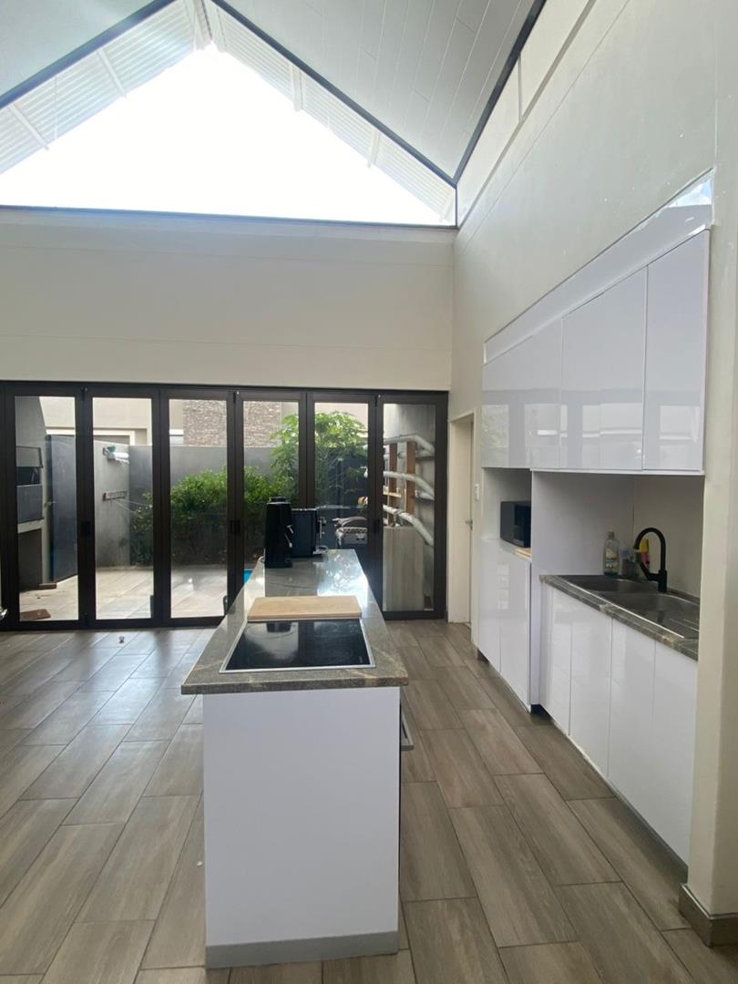 Three bedroom townhouse in Omeya Golf Estate with 2 bathrooms. The open plan living area and kitchen has stacking/folding doors leading to a courtyard with build-in barbeque and small garden. The unit has a double garage and is very private.