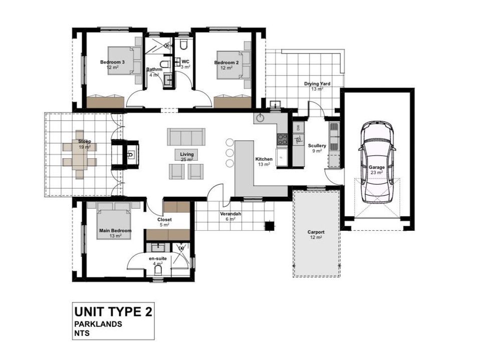 Unit type 5 boasts 3 bedrooms and 2 bathrooms, main on-suite.